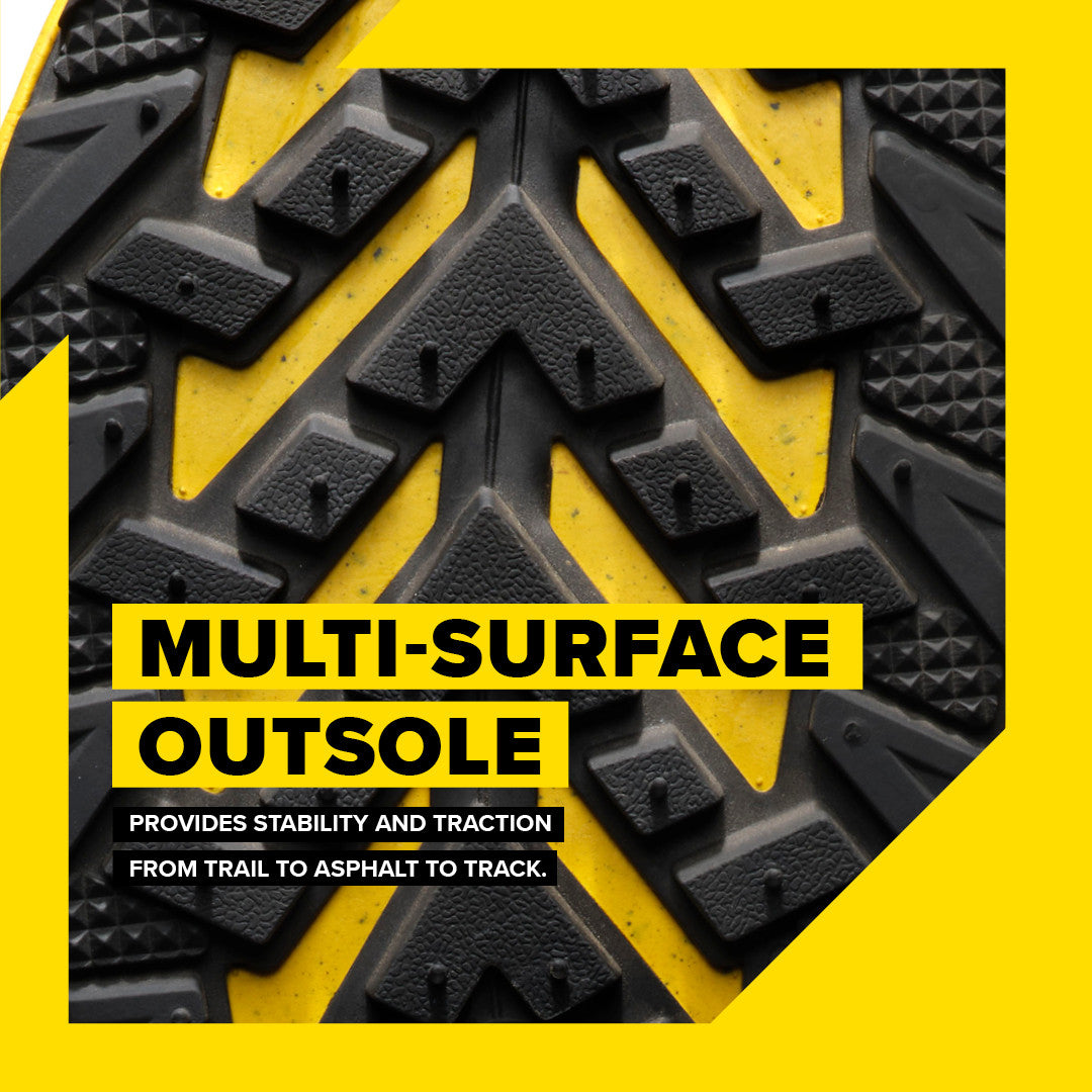 Our multi-service outsole provides stability and traction from trail to asphalt to track.